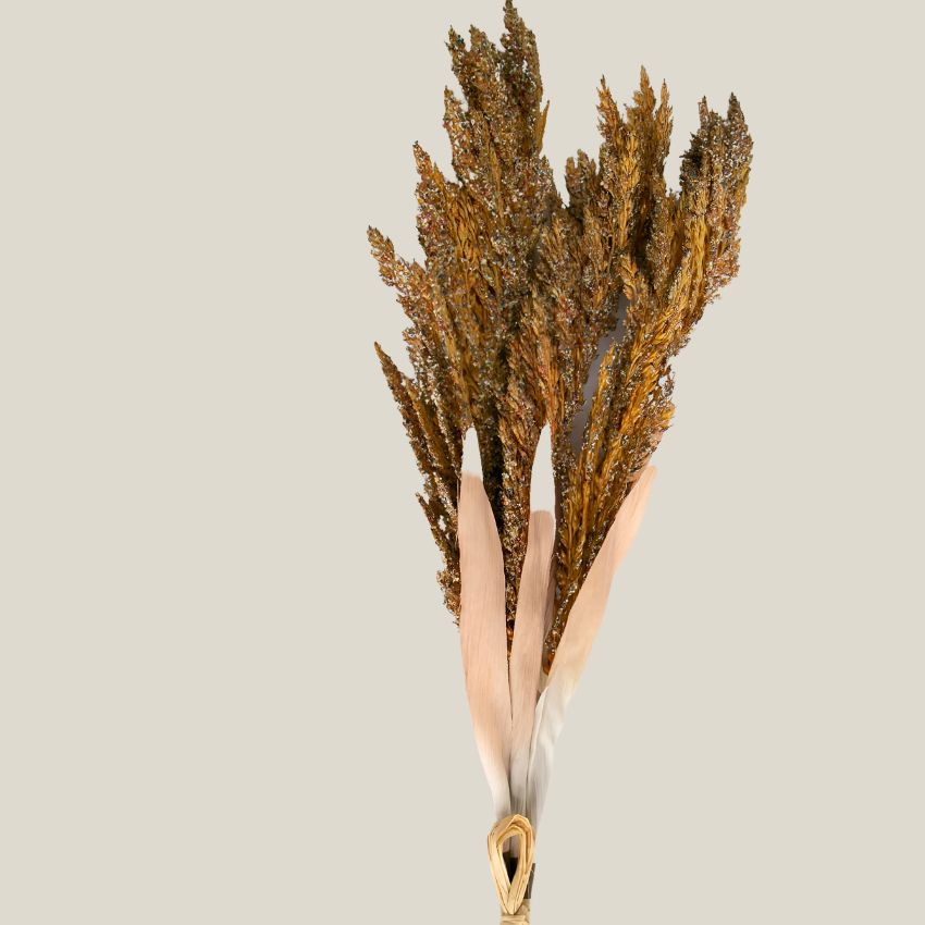 Follaje Espiga Preservado Bronce Artificial Altura 66 cm 20323, perfecta para decorar jarrones altos con un aspecto envejecido y preservado en colores tierra. Definitivamente la mejor elección para esta temporada y larga duración para tus jarrones.