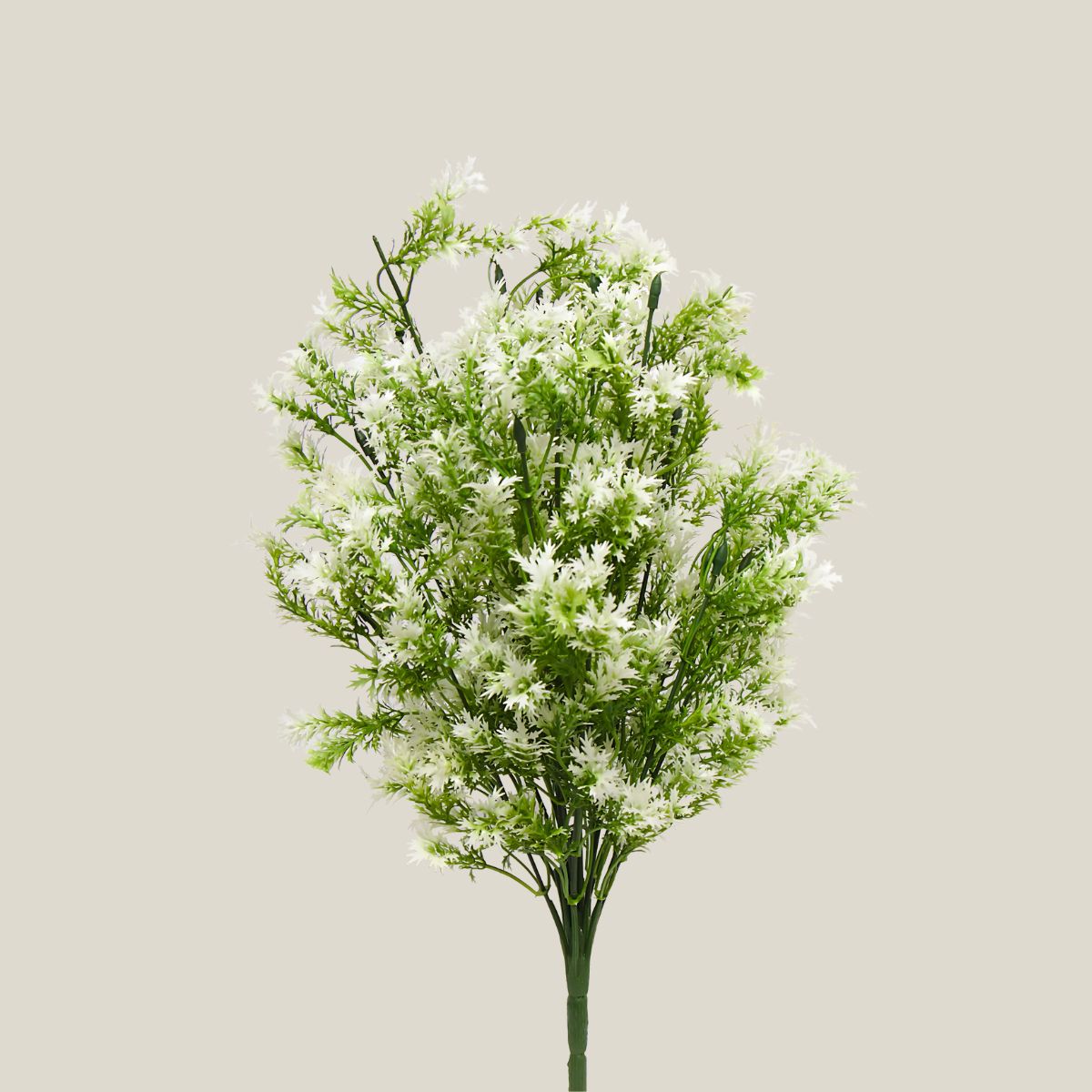 Follaje Punta Blanca Artificial, muy parecida al famoso gypso. Nuestro lindo follaje decorativo aporta un estilo botánico y duradero a tus diseños florales.