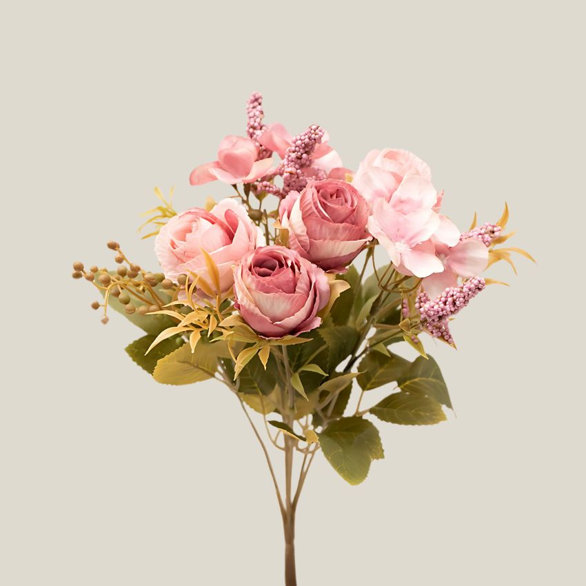 Este encantador ramo de rosas mini en tono rosa coral es perfecto para quienes desean añadir un toque de ternura, calidez y frescura a sus espacios. Su tamaño compacto y su color suave lo convierten en un detalle decorativo lleno de encanto y sutileza. Cada rosa está cuidadosamente elaborada en seda de alta calidad, logrando un acabado natural y pétalos suaves al tacto. Su tamaño mini le da una apariencia delicada, ideal para arreglos sutiles y elegantes.