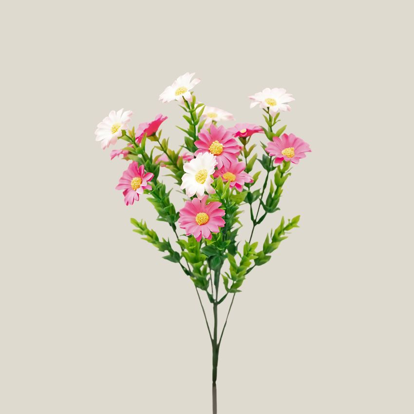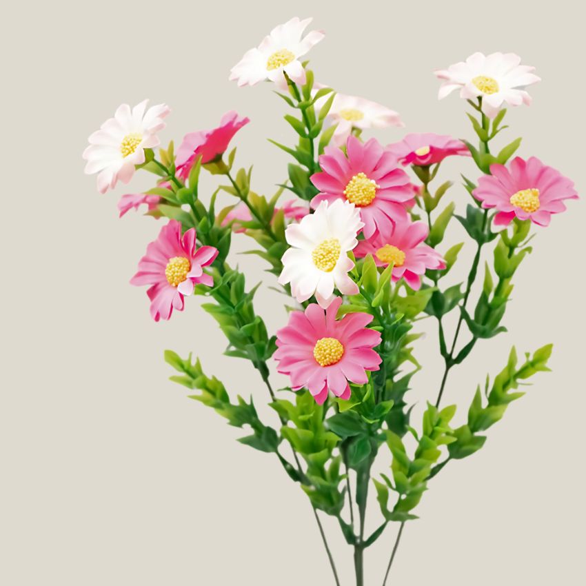 Este delicado ramo de margaritas mini en tono Crema francés es perfecto para quienes desean añadir un toque de ternura, frescura y feminidad a su decoración. Su apariencia natural y su tamaño compacto lo hacen ideal para espacios acogedores y detalles sutiles llenos de encanto. Cada margarita ha sido cuidadosamente elaborada en seda suave, con pétalos definidos y tallos finos que imitan a la perfección las flores naturales, sin preocuparse por el riego o el marchitamiento.
