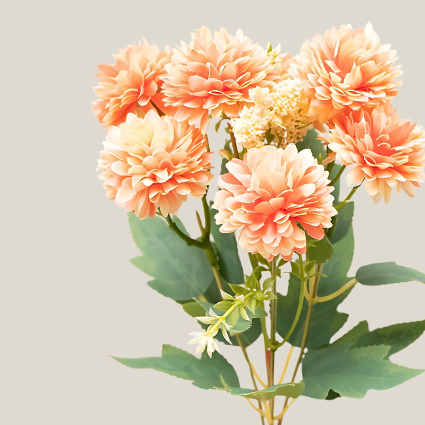 Añade un toque de sutileza, elegancia y frescura a tus espacios con este delicado ramo de pompón mini en Naranja persa. Su diseño compacto y encantador lo convierte en el complemento perfecto para decoraciones refinadas y ambientes luminosos. Con pequeñas flores de forma esférica y acabado sedoso, este ramo ofrece una apariencia limpia y delicada, ideal para quienes buscan resaltar la belleza de los detalles simples pero impactantes.