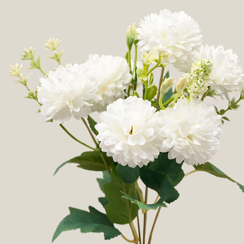 Añade un toque de sutileza, elegancia y frescura a tus espacios con este delicado ramo de pompón mini en blanco nieve. Su diseño compacto y encantador lo convierte en el complemento perfecto para decoraciones refinadas y ambientes luminosos. Con pequeñas flores de forma esférica y acabado sedoso, este ramo ofrece una apariencia limpia y delicada, ideal para quienes buscan resaltar la belleza de los detalles simples pero impactantes.