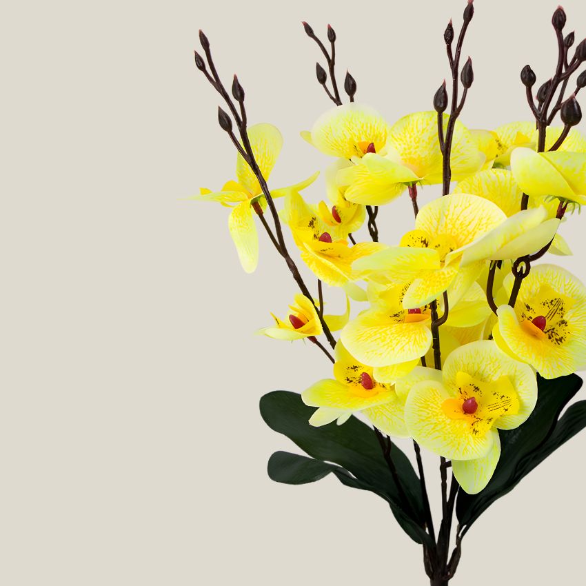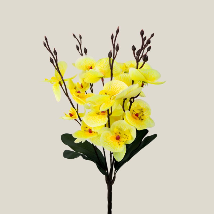 Ramo Orquidea Artificial amarillo. presenta 5 tallos usa tu imaginación para decorar un jarrón y complementarlo con mas flores. de colores igual de vibrantes.