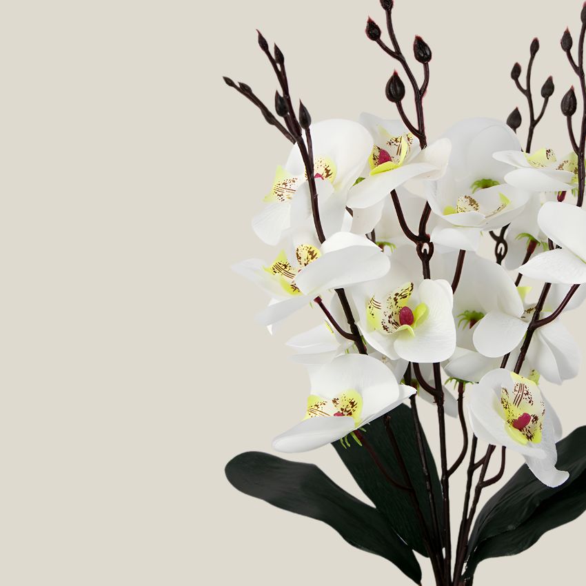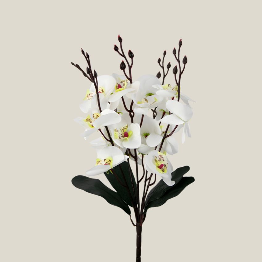 Ramo Orquidea Artificial blanco. presenta 5 tallos usa tu imaginación para decorar un jarrón y complementarlo con mas flores. de colores igual de vibrantes.